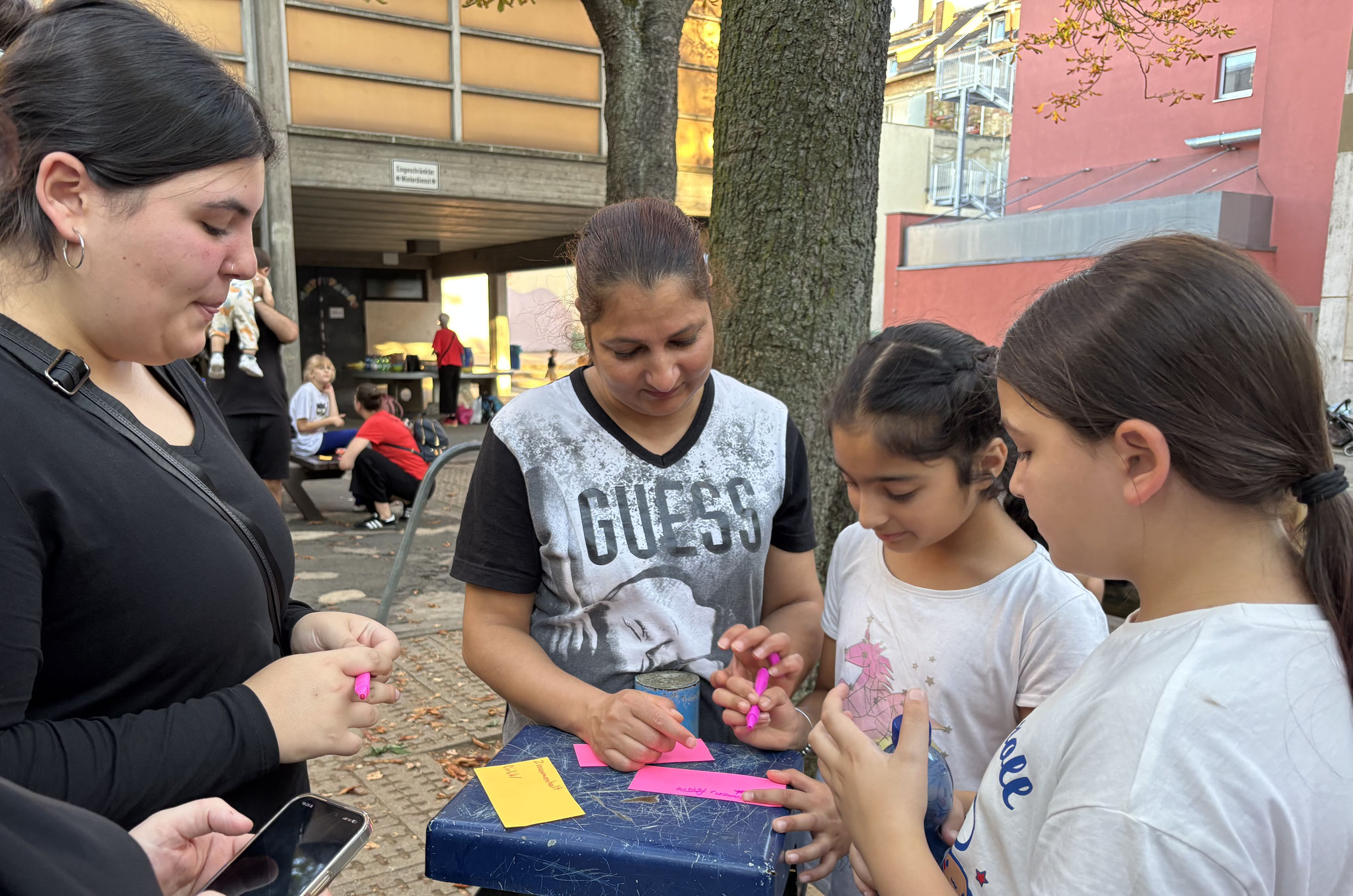 Auftakt bildete der Eltern-Kind-Tag, in dem die Familien -gestützt durch die wertegeleitete Arbeit im Projekt selbst und auch im Diesterweg-Team - ihre Familienwerte ermittelten.